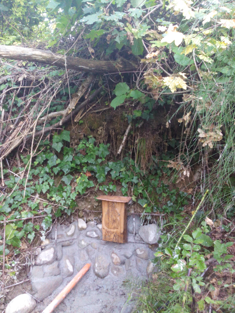 Un fedele ha scolpito su questo pregiato legno di ulivo l’immagine della Santa Vergine ed ha incanalato la poca acqua che viene fuori.