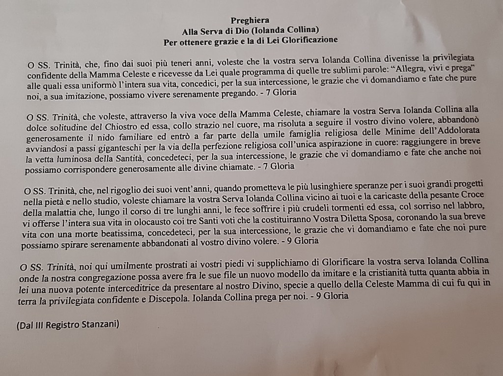 Ecco la preghiera che la sua congregazione faceva per invocare grazie e chiedere la sua beatificazione.