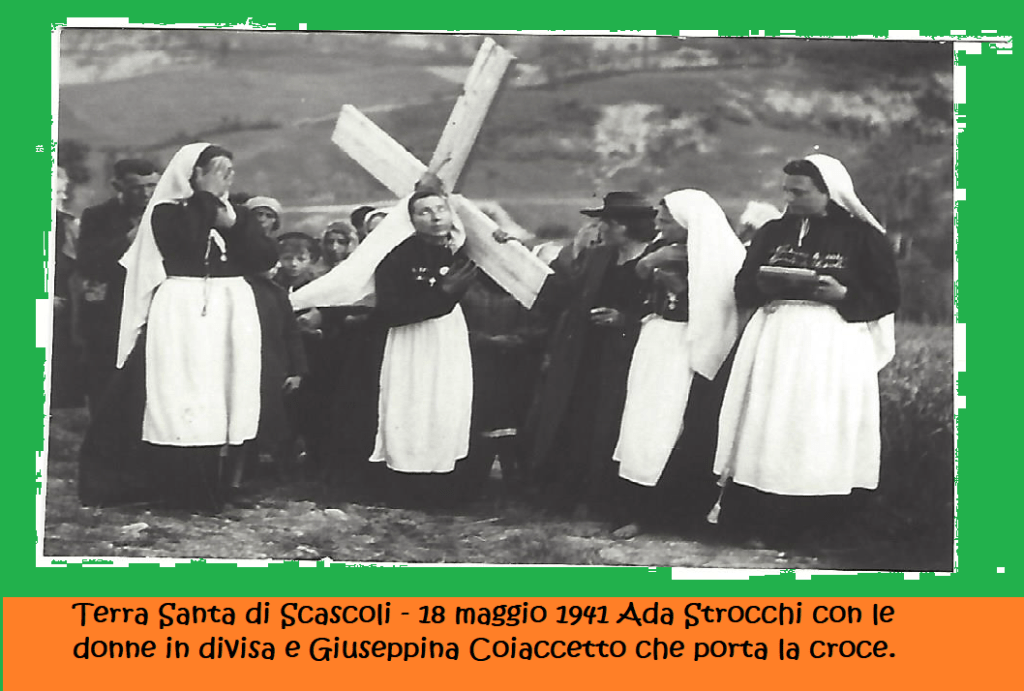 Questi li confezionò la Signora Strocchi, voluti da Maria Santissima che dettò alle Veggenti i colori, le strutture variate per ogni circostanza, come parlano gli scritti in mio possesso. Io sapevo che un tempo li conservava la Signora Ada Strocchi, che poi fu anche la stenodattilografa della Terra Santa. Lei conservava tutti gli scritti, tutto quello che apparteneva alla Terra Santa. Si ammalò seriamente, una malattia la portò al decesso. Dai parenti non era tanto ben vista, per la fede che lei nutriva per l’Apparizione. Durante la malattia fu abbandonata. Costoro, solo dopo la tumulazione, si fecero avanti per prendere ogni sostanza. Tutto quello che apparteneva alla Terra Santa fu distrutto. Con gli scritti si temeva anche per i vestiti avessero fatto la stessa fine. L’Imelde (Faggiolini), come ha confermato, fece in tempo a venirne in possesso e in segreto li ha conservati fino a oggi …