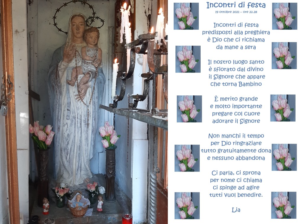 Oggi, 19 ottobre, nell’Eremo di preghiera, al Casetto, ci siamo incontrati per pregare e rendere onore alla Beata Vergine del Santo Rosario che ha voluto questo giorno qual festa, oltre a quelle del 19 luglio e del 10 settembre.