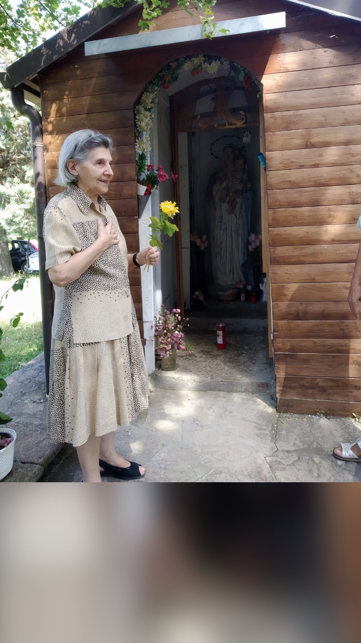Carolina, accompagnata dal figlio, portando delle rose alla Santa Vergine, è venuta a pregare con noi. Abbiamo detto i Misteri Dolorosi e i Misteri Gloriosi. Sempre, la presenza degli anziani fedeli è commovente e ricca di gradevolissime sensazioni. Aggiungono valore alla nostra preghiera. Grazie infinite.