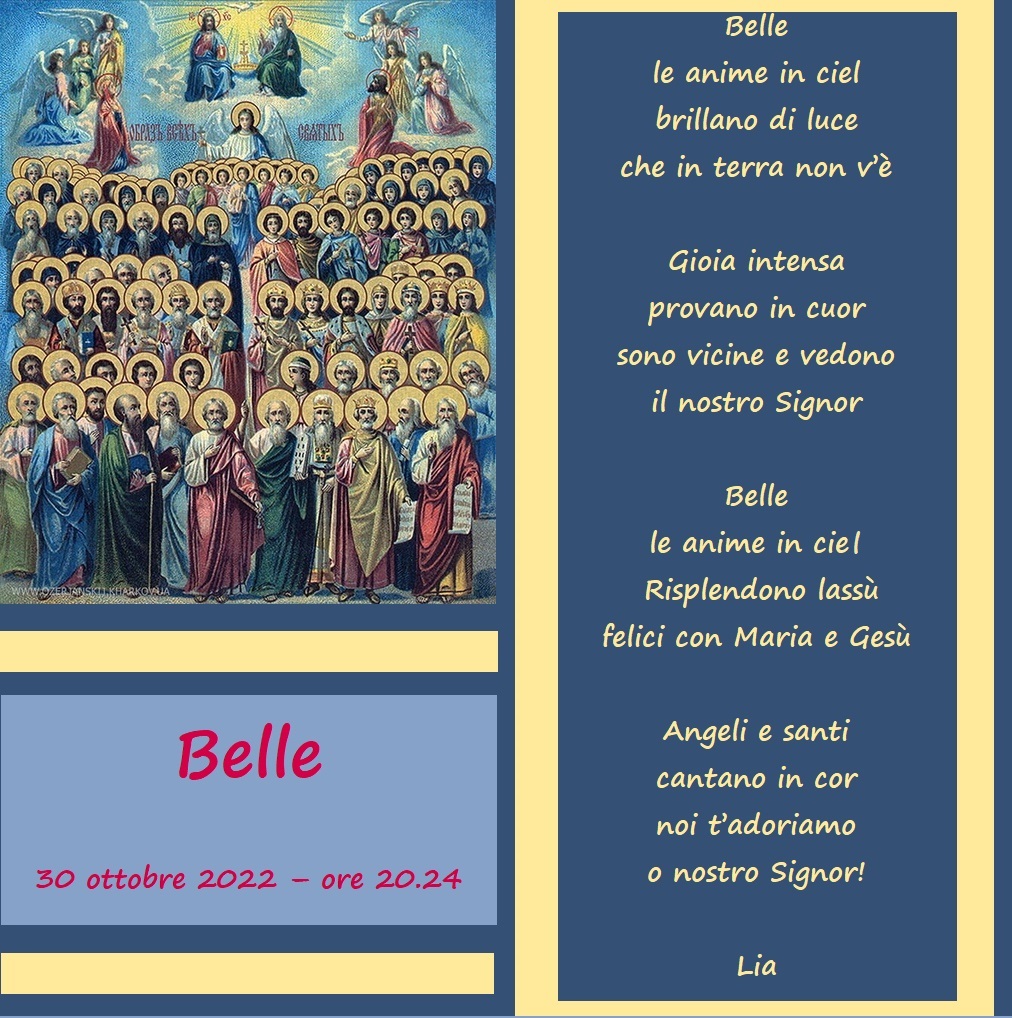 Una mia poesia – “Belle” – in onore di tutti i santi che godono della visione della Santissima Trinità in Paradiso.