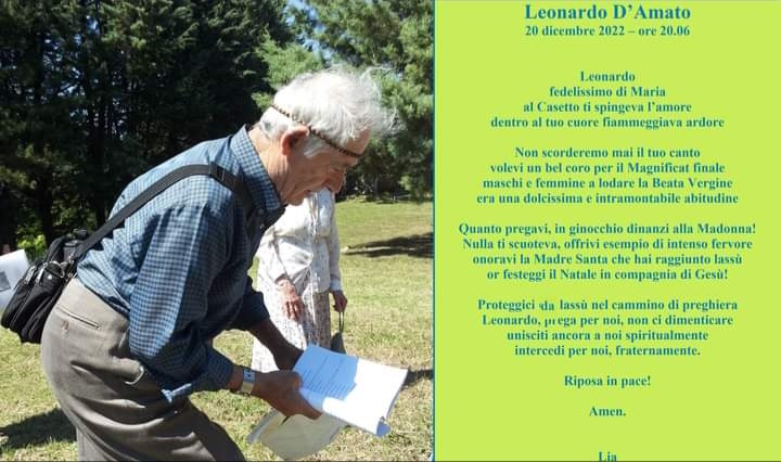 Ieri, si è spento, dopo mesi di malattia, il nostro carissimo amico Leonardo D’Amato, esempio fulgido di grandissima fede.