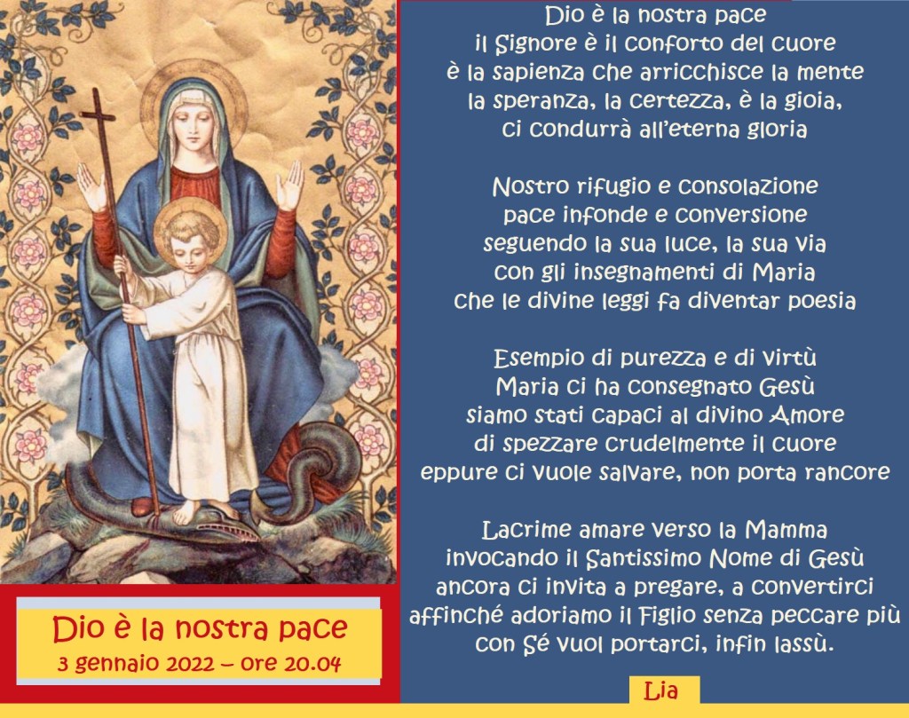 Dio è la nostra pace Pubblicato daliacardinale3 gennaio 2023Pubblicato in: Senza categoria Condividi: Condividi su X (Si apre in una nuova finestra) X Condividi su Facebook (Si apre in una nuova finestra) Facebook Mi piace Caricamento... Correlati