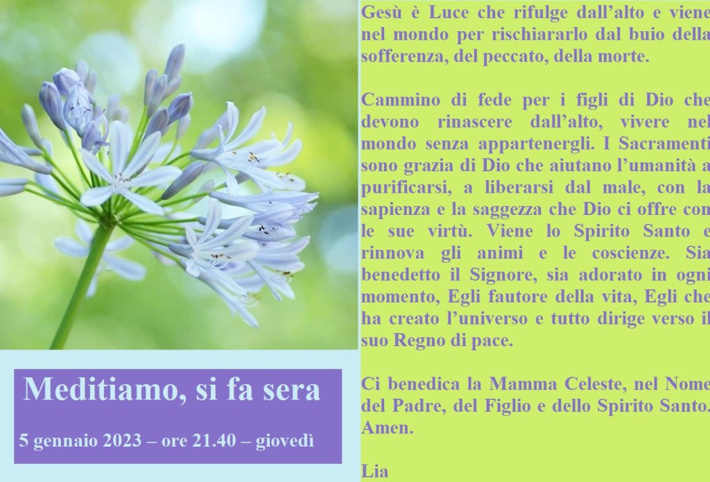 Meditiamo, si fa sera Pubblicato daliacardinale5 gennaio 2023Pubblicato in: Senza categoria Condividi: Condividi su X (Si apre in una nuova finestra) X Condividi su Facebook (Si apre in una nuova finestra) Facebook Mi piace Caricamento... Correlati