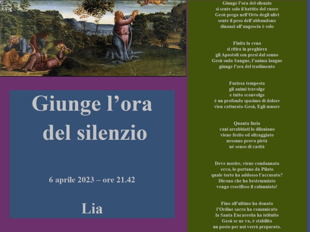 Giunge l’ora del silenzio Pubblicato daliacardinale7 aprile 20237 aprile 2023Pubblicato in: Senza categoria Lia Condividi: Condividi su X (Si apre in una nuova finestra) X Condividi su Facebook (Si apre in una nuova finestra) Facebook Mi piace Caricamento... Correlati