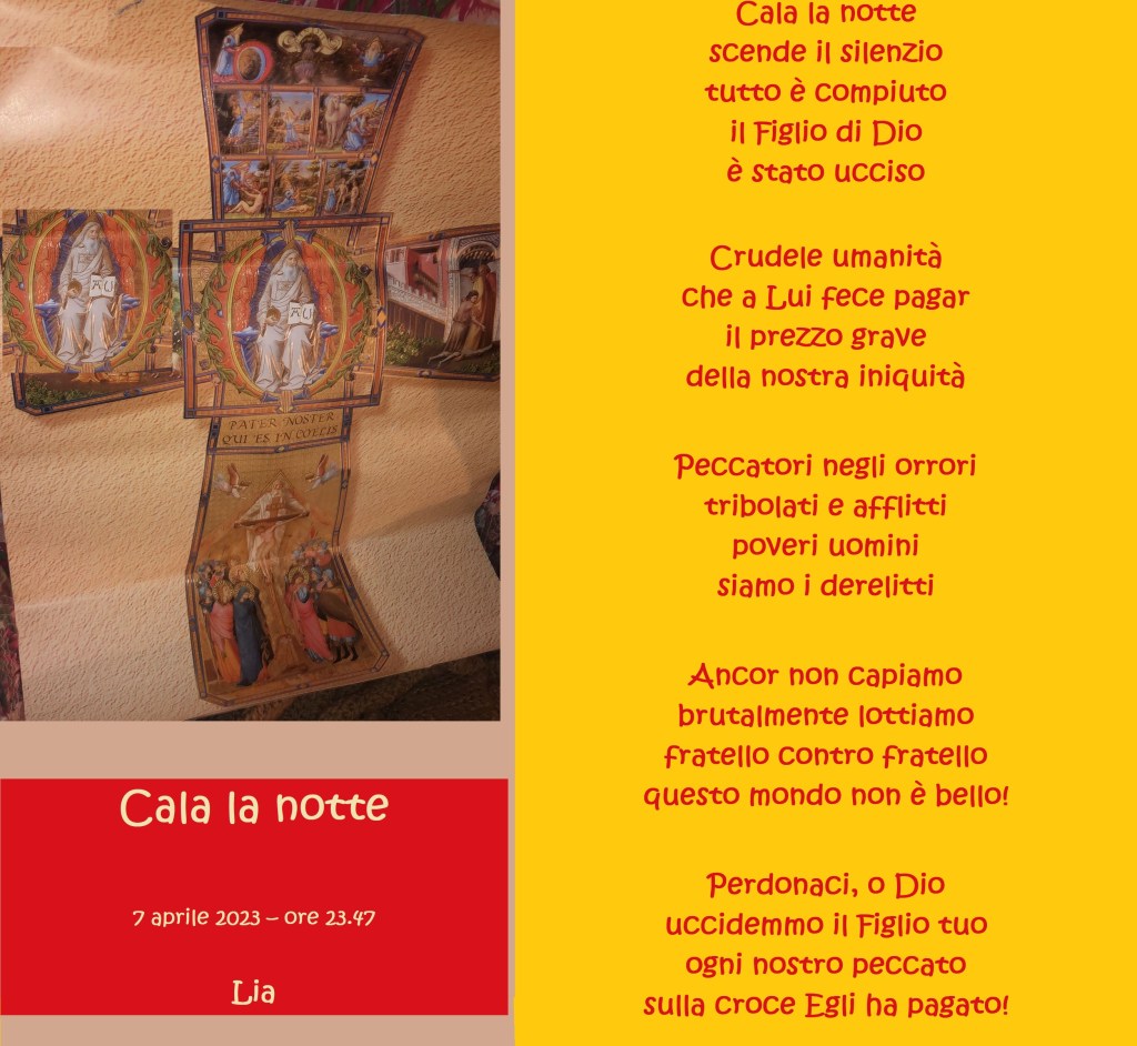 Cala la notte Pubblicato daliacardinale8 aprile 2023Pubblicato in: Senza categoria Lia Condividi: Condividi su X (Si apre in una nuova finestra) X Condividi su Facebook (Si apre in una nuova finestra) Facebook Mi piace Caricamento... Correlati