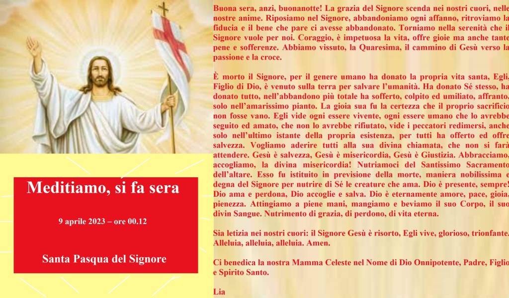 Buona Pasqua a tutti Pubblicato daliacardinale9 aprile 2023Pubblicato in: Senza categoria Lia Condividi: Condividi su X (Si apre in una nuova finestra) X Condividi su Facebook (Si apre in una nuova finestra) Facebook Mi piace Caricamento... Correlati