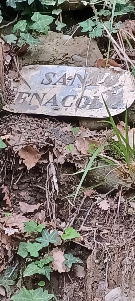 Da dodici anni vado nel boschetto a pregare con gli altri fedeli della Terra Santa e Benedetta di Scascoli. Solo oggi, ho notato, per la prima volta al lato dell’altarino del Santo Cenacolo, la scritta che ho fotografato.