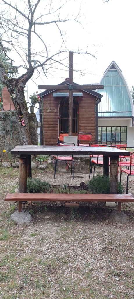 La panca è, oltreché tradizione del luogo, molto utile per noi che ci inginocchiamo per pregare il Santo Rosario.