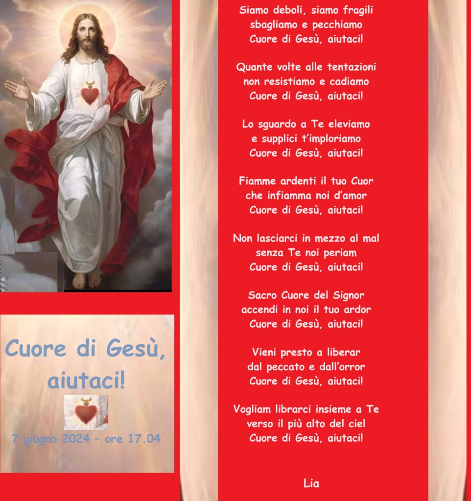 Cuore di Gesù, aiutaci! Pubblicato daliacardinale7 giugno 2024Pubblicato in: Senza categoria Condividi: Condividi su X (Si apre in una nuova finestra) X Condividi su Facebook (Si apre in una nuova finestra) Facebook Mi piace Caricamento... Correlati