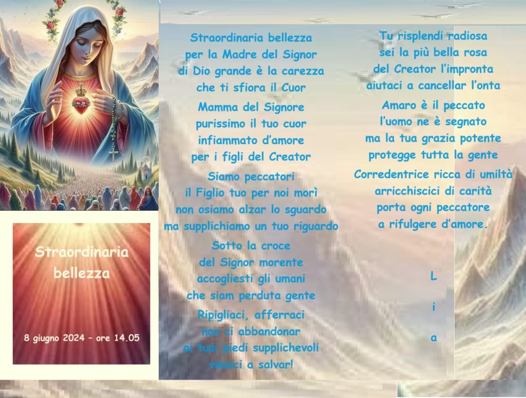 Straordinaria bellezza Pubblicato daliacardinale8 giugno 2024Pubblicato in: Senza categoria Condividi: Condividi su X (Si apre in una nuova finestra) X Condividi su Facebook (Si apre in una nuova finestra) Facebook Mi piace Caricamento... Correlati