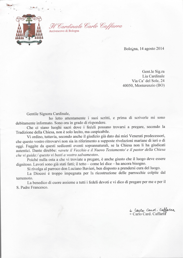 Ancora adesso mi giungono voci di persone che non vengono a pregare al “Casetto” perché non vogliono disubbidire alla Chiesa di Bologna.