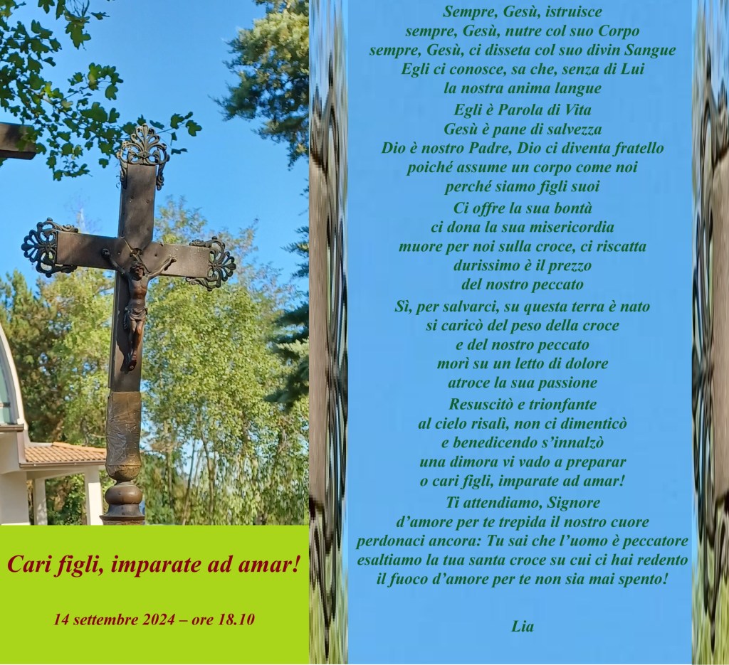 Cari figli, imparate ad amar! Pubblicato daliacardinale14 settembre 202415 settembre 2024Pubblicato in: Senza categoria Oggi festa dell’Esaltazione della Santa Croce. Condividi: Condividi su X (Si apre in una nuova finestra) X Condividi su Facebook (Si apre in una nuova finestra) Facebook Mi piace Caricamento... Correlati