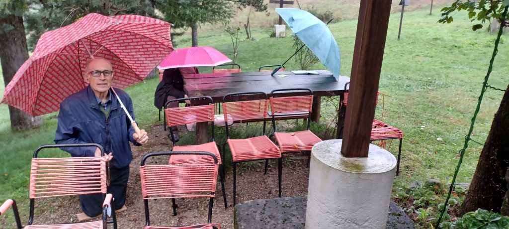 Sotto la pioggia a recitare i tre Santi Rosari per la ricorrenza voluta dalla Madonna