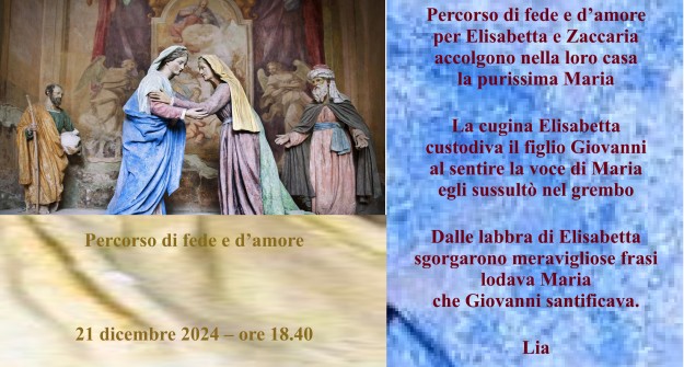 Percorso di fede e d’amore Pubblicato daliacardinale22 dicembre 2024Pubblicato in: Senza categoria Condividi: Condividi su X (Si apre in una nuova finestra) X Condividi su Facebook (Si apre in una nuova finestra) Facebook Mi piace Caricamento... Correlati