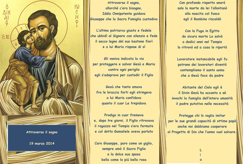 Chiediamo, al Patriarca San Giuseppe, padre putativo di Gesù, di assisterci lungo il cammino della vita, di starci accanto, con Gesù e Maria, nell’agonia.