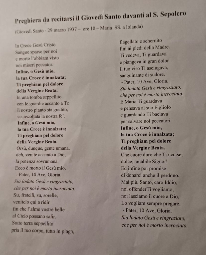 Questa preghiera va recitata il Giovedì Santo nella Terra Santa e Benedetta di Scascoli Pubblicato daliacardinale17 aprile 2025Pubblicato in: Senza categoria Condividi: Condividi su X (Si apre in una nuova finestra) X Condividi su Facebook (Si apre in una nuova finestra) Facebook Mi piace Caricamento... Correlati
