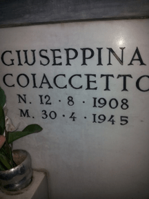 La lapide sulla tomba di Giuseppina Coiaccetto nella Certosa di Bologna
