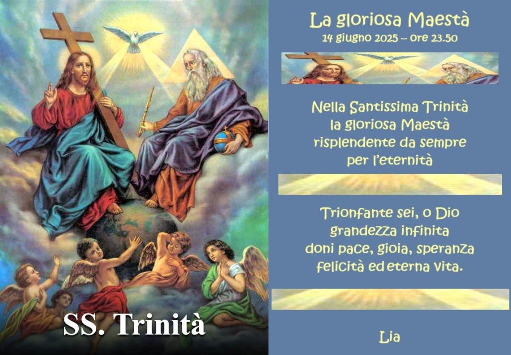 Oggi, festività della Santissima Trinità, dedico questa poesia al Signore, ci benedica tutti e ci colmi di grazie e di benedizioni.