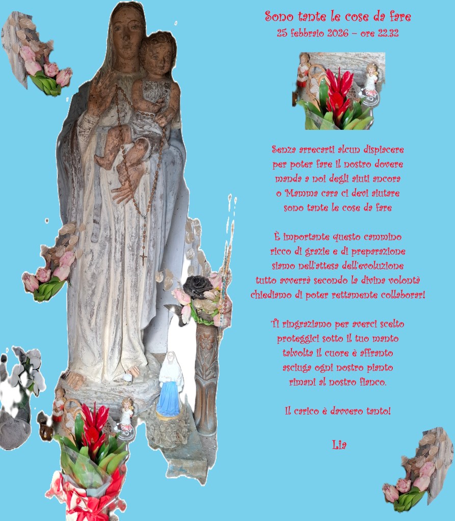 È un impegno quotidiano, continuo, da anni; c’è ancora tanto da fare e le nostre forze e soprattutto il tempo ci vengono a mancare. Madonnina, a Te affidiamo tutto il nostro lavoro. Donaci la forza di continuare a lavorare e mandaci degli aiuti. Tu puoi!
